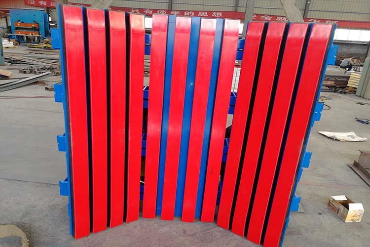 彈簧式緩沖床在原來緩沖床床體下面增加了一種裝置—彈簧緩沖裝置,這樣做用于輸送物料大、落差高的情況。有效提高了對(duì)落料的緩沖效果,同時(shí)也提高了緩沖床自身的抗沖擊強(qiáng)度,延長了緩沖床的壽命。相應(yīng)地提高了整個(gè)輸送系統(tǒng)的工作效率,安全性高。彈簧式緩沖床適用于各類帶式輸送機(jī),特別適用于長距離、高運(yùn)速、大運(yùn)量、高強(qiáng)度、工況惡劣的帶式輸送機(jī)。